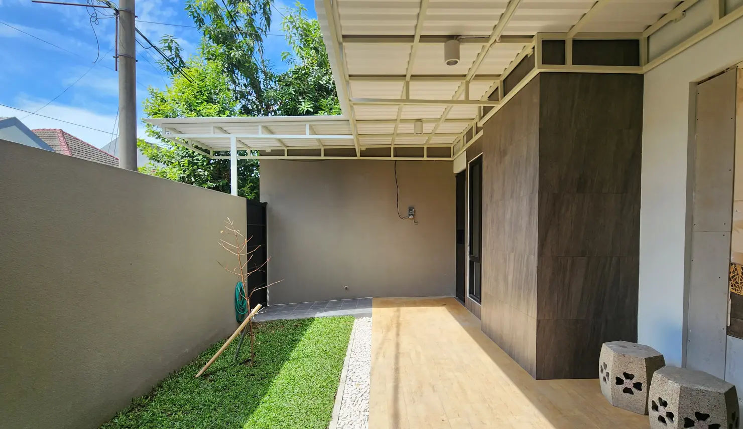 Hunian modern dengan komposisi desain yang bersih dan tertata, menghadirkan keseimbangan antara arsitektur kontemporer dan sentuhan alami. Taman yang menyatu dengan area bangunan menciptakan suasana terang, segar, dan hidup di setiap sudut. Konsep ruang yang terbuka membuat rumah terasa luas sekaligus hangat, menjadikan PC House sebagai hunian modern yang tetap dekat dengan alam.